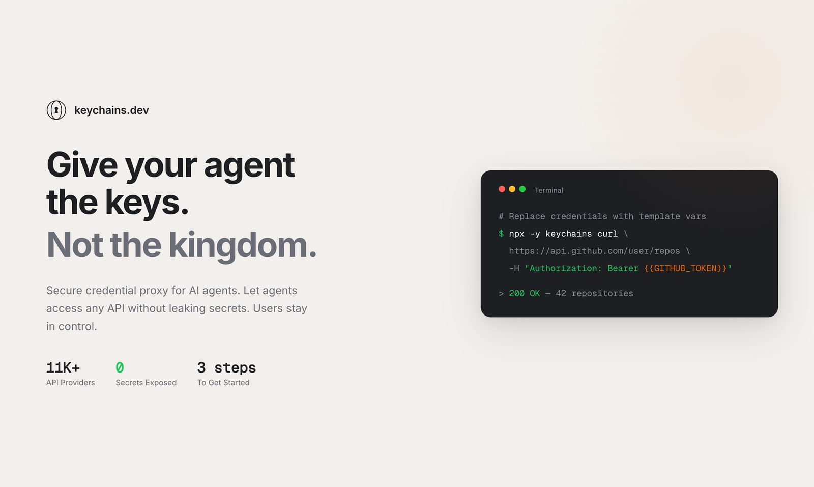 Keychains.dev é um proxy seguro de credenciais para agentes de IA, que injeta credenciais dinâmicas em requisições API, garantindo segurança e controle de acesso com auditoria completa e compatibilidade com mais de 11.000 provedores.