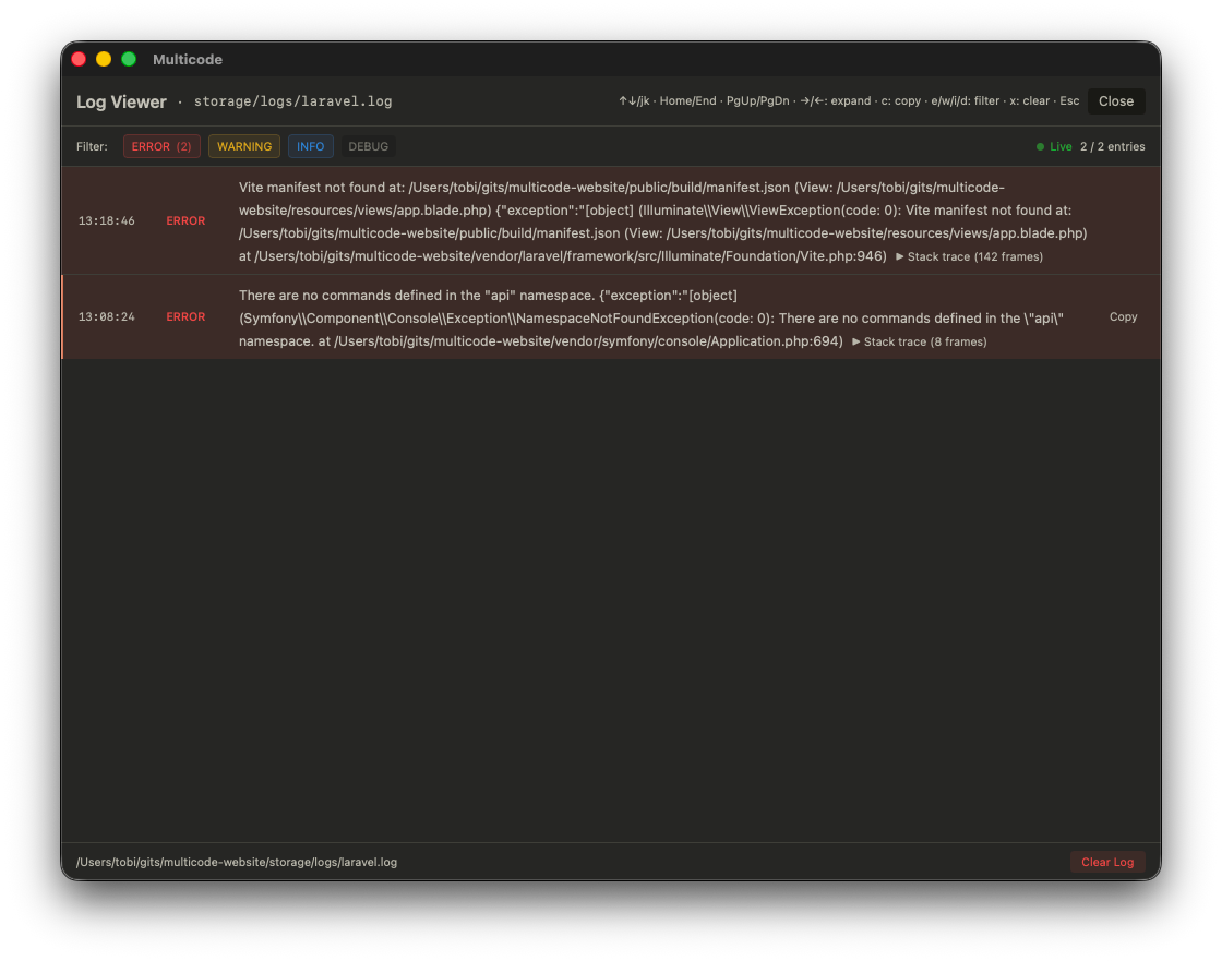 🔍 Análise de Logs: Visualização e filtragem eficiente dos logs do sistema para depuração rápida.