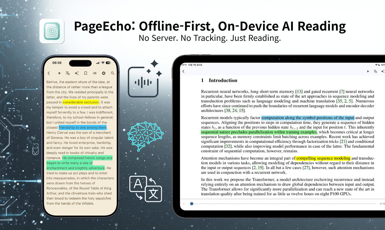 Descrição da ferramenta: PageEcho é um leitor de eBooks com inteligência artificial, totalmente offline, que funciona localmente no dispositivo iPhone ou iPad, oferecendo recursos como tradução, síntese, leitura em voz alta e mapas mentais para uma experiência de leitura focada e segura.