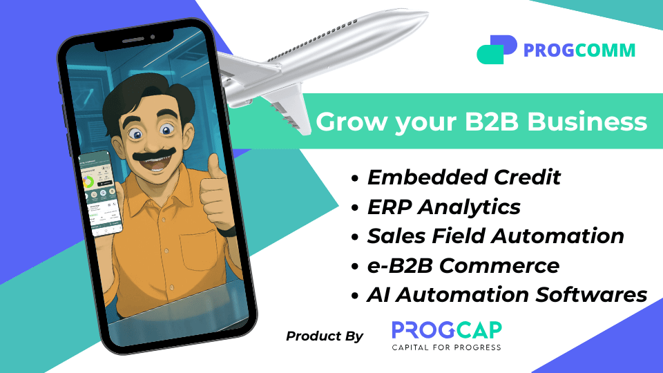 Descrição da ferramenta: ProgComm é uma plataforma de comércio B2B alimentada por inteligência artificial, que integra soluções financeiras, gerenciamento de pedidos, dashboards ERP e rastreamento georreferenciado para otimizar operações comerciais.