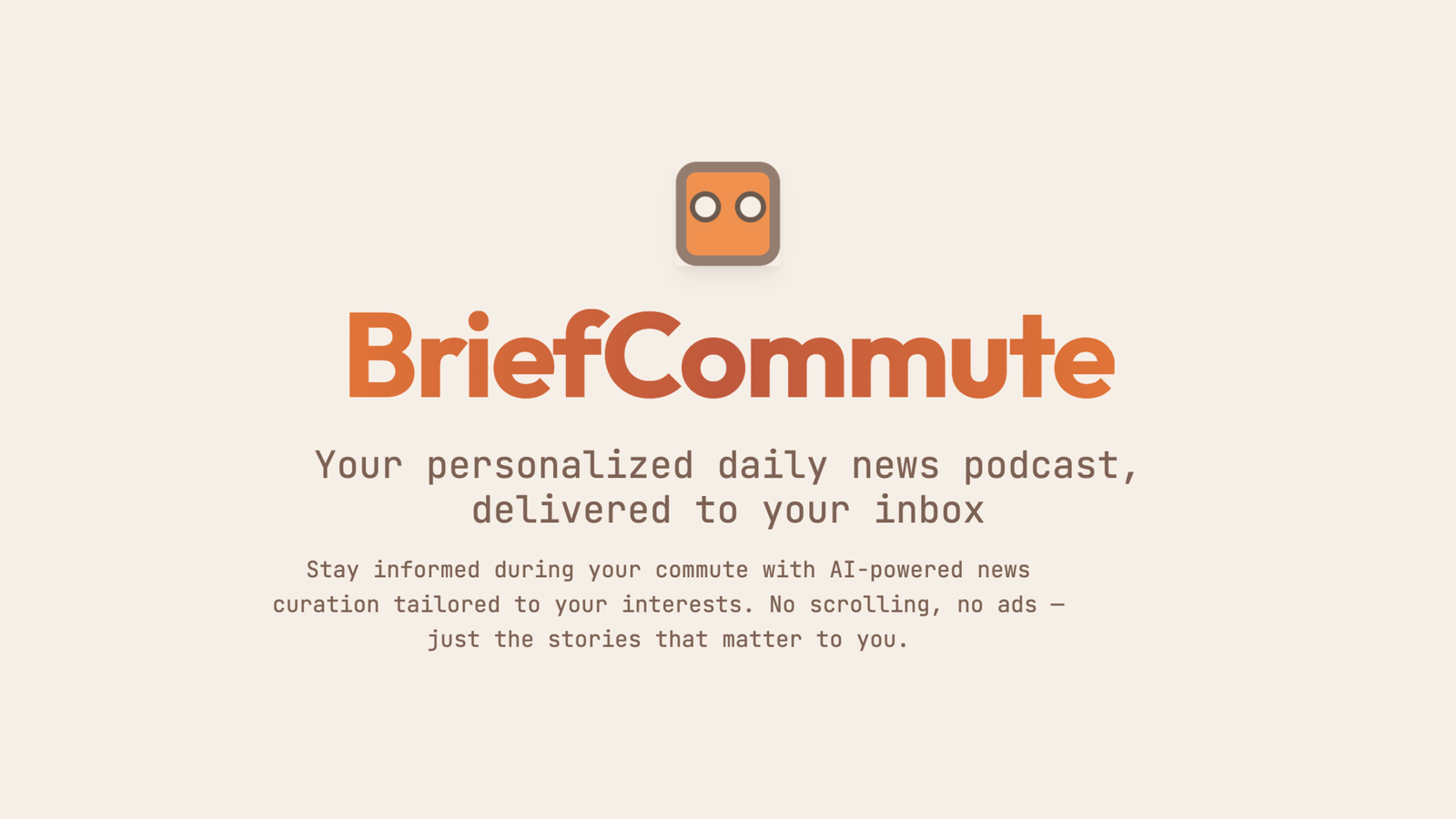Descrição da ferramenta: BriefCommute é um podcast diário de notícias personalizado, entregue por e-mail, com curadoria de conteúdo alimentada por inteligência artificial, permitindo que os usuários fiquem informados durante o deslocamento de forma prática e eficiente.