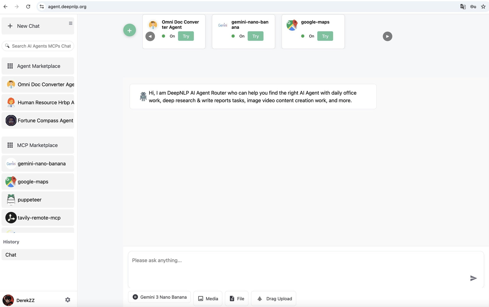 Descrição da ferramenta: Plataforma de infraestrutura que permite explorar, implantar e hospedar mais de 40 mil agentes de IA, oferecendo um marketplace, roteamento inteligente e integração com aplicativos de IA em tempo real para negócios e desenvolvedores.