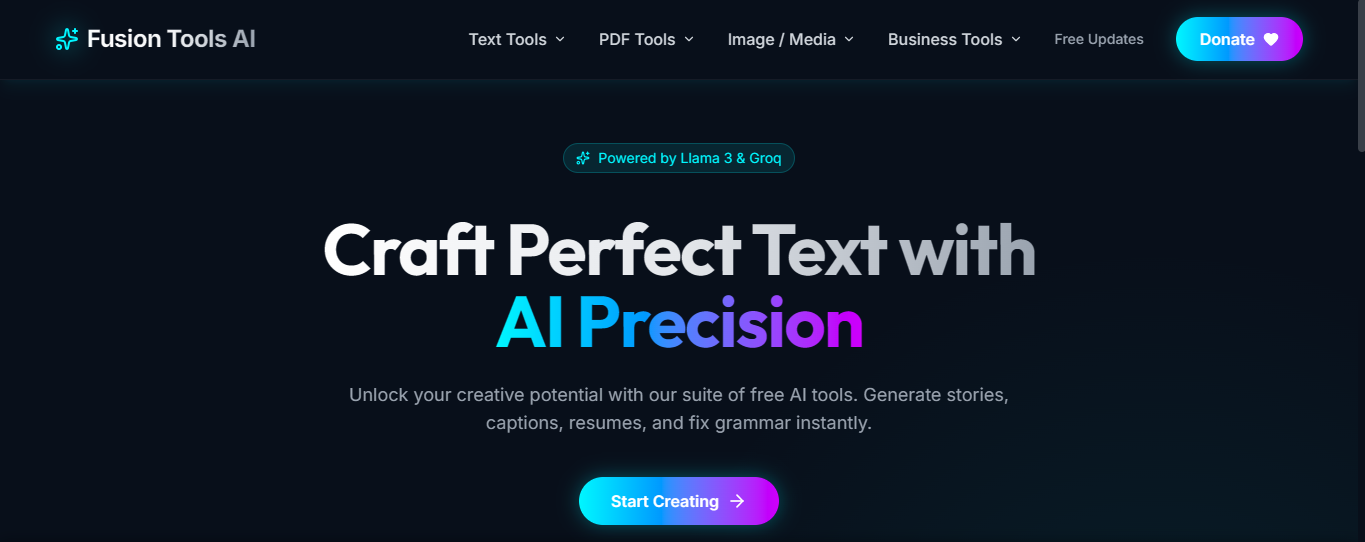 Descrição da ferramenta: FusionToolsAI é uma plataforma curada que reúne diversas ferramentas de inteligência artificial gratuitas, facilitando a descoberta e o acesso rápido para estudantes, criadores, desenvolvedores e empreendedores em um único ambiente online.