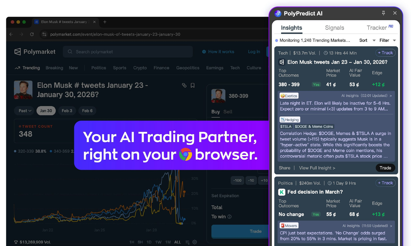 🌐 Integração com plataformas: Compatível com mercados como Polymarket e Kalshi para facilitar o acompanhamento dos mercados de previsão.