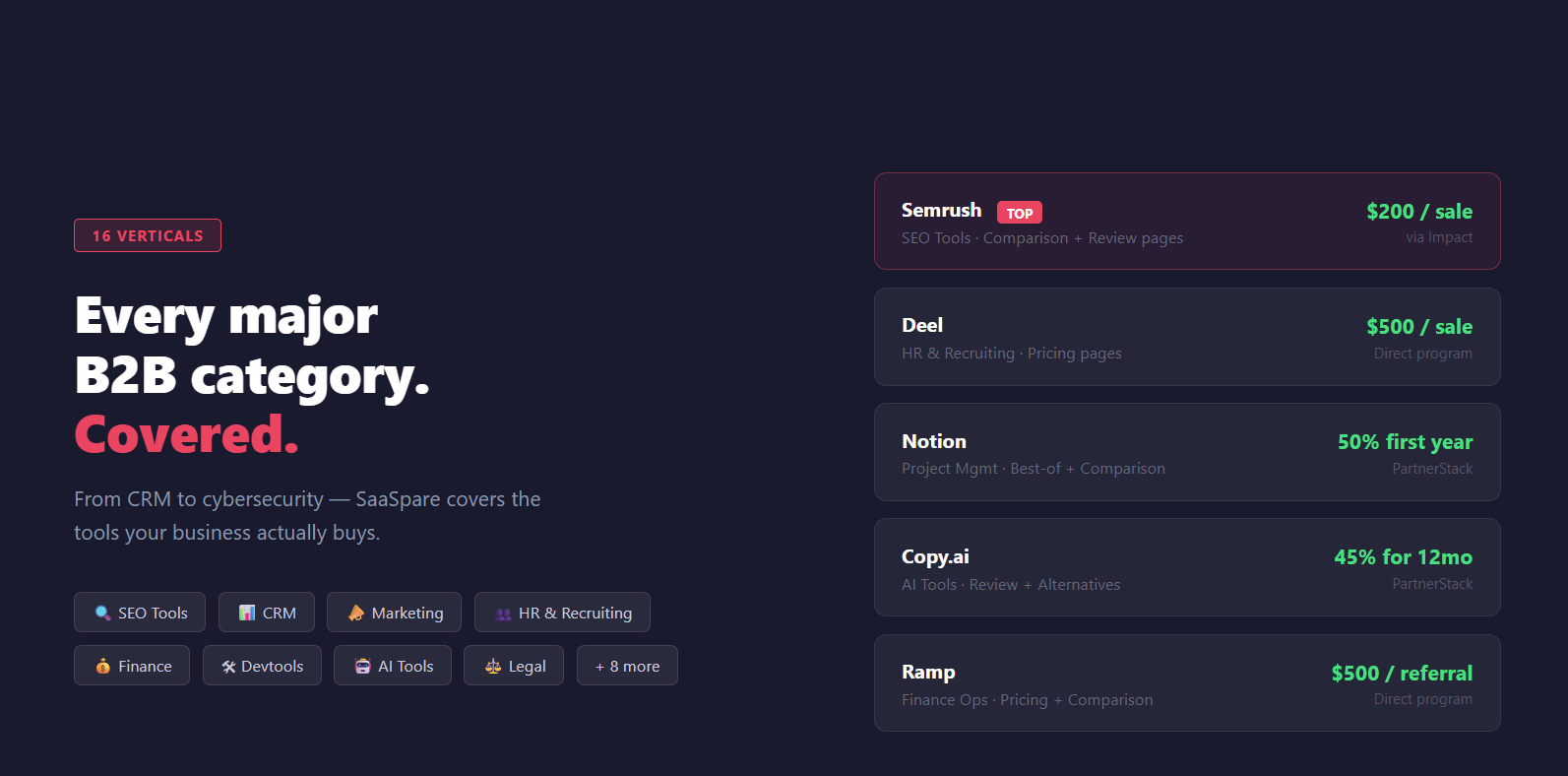 Descrição da ferramenta: SaaSpare oferece comparações imparciais de mais de 500 ferramentas SaaS B2B, incluindo análises de preços, prós e contras, ajudando na tomada de decisão informada antes da aquisição.