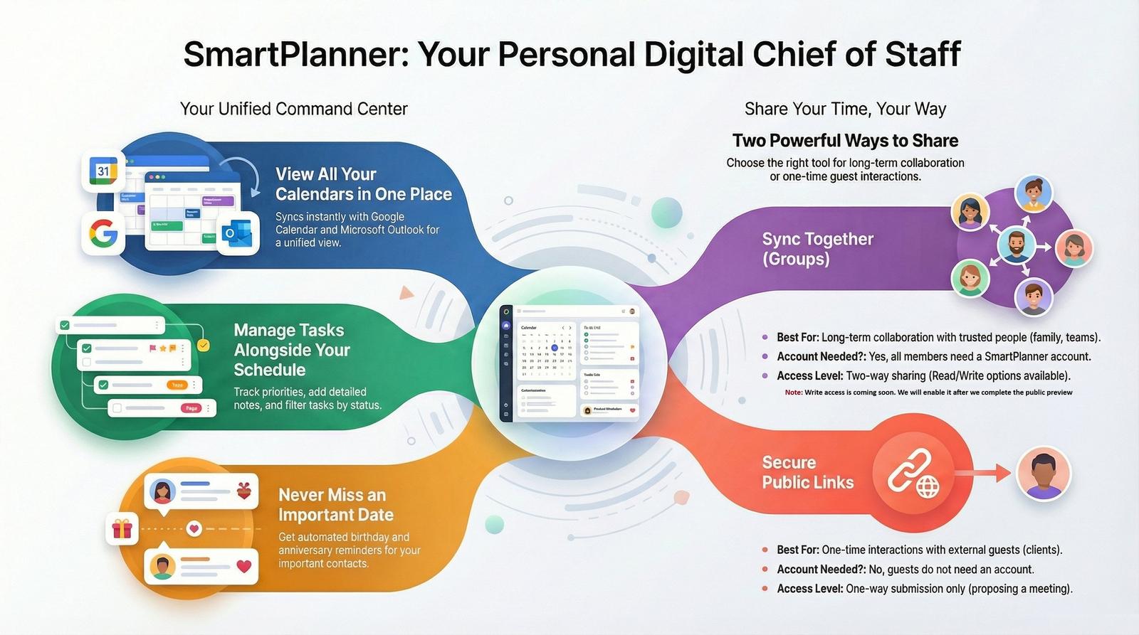 🔐 Compartilhamento de Disponibilidade: Compartilhar horários livres com colegas ou clientes para facilitar agendamentos seguros.