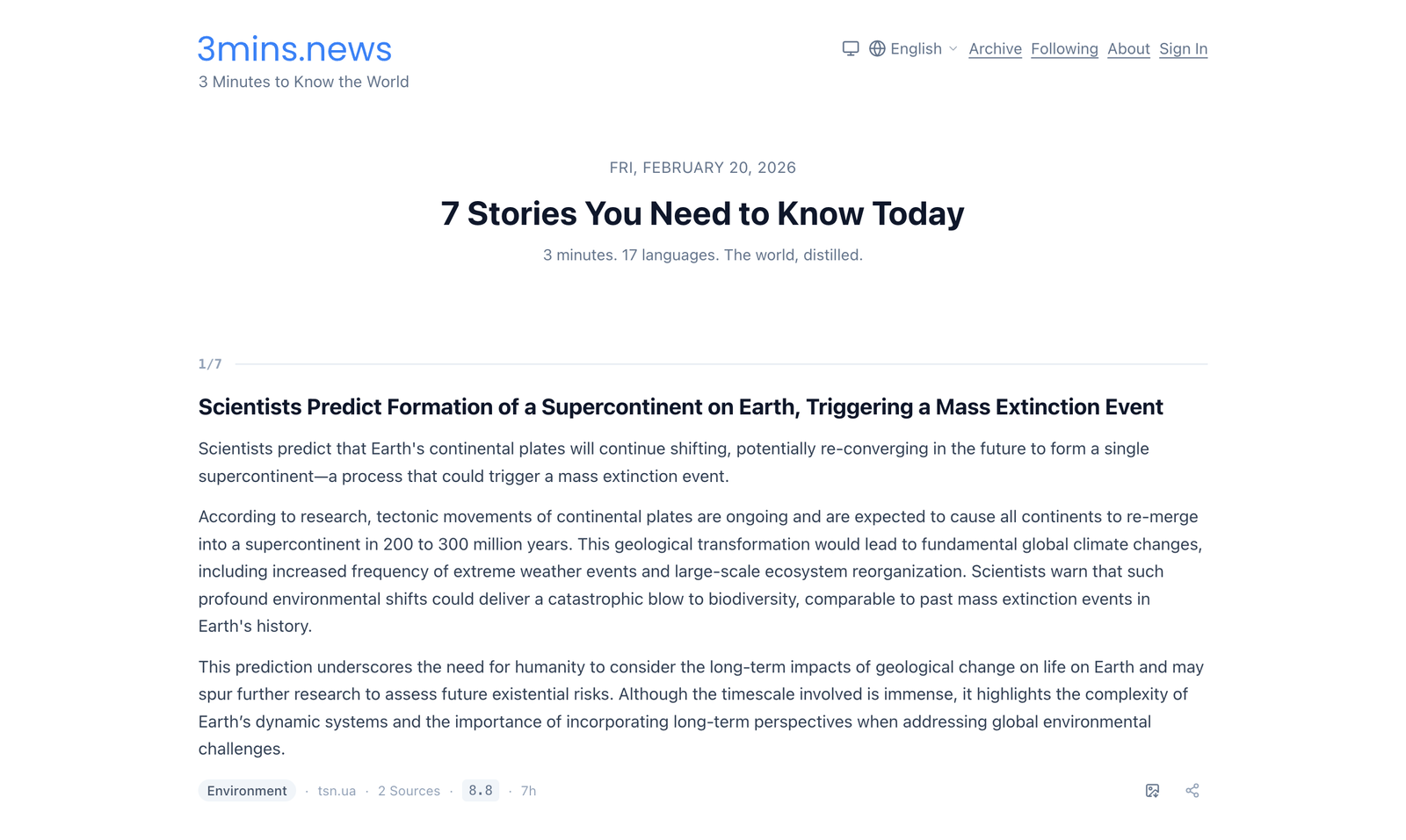 Descrição da ferramenta: 3mins.news é um aplicativo de notícias que apresenta de 5 a 7 histórias relevantes, selecionadas por inteligência artificial, evitando o scroll infinito e algoritmos, proporcionando uma leitura rápida e clara em apenas três minutos.