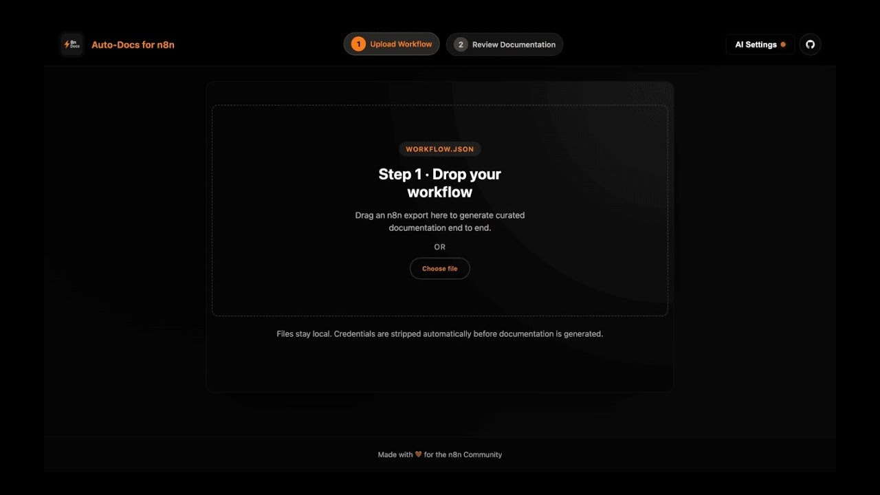 O 8n Docs converte automaticamente fluxos de trabalho do n8n em documentação clara e organizada, facilitando a compreensão sem necessidade de edição manual. Funciona localmente, garantindo privacidade e segurança dos dados.