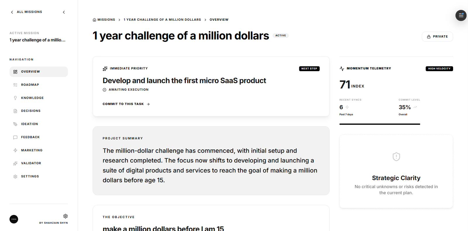 📅 Gestão de Roadmaps: Permite transformar planos em cronogramas públicos com The Glass Box.