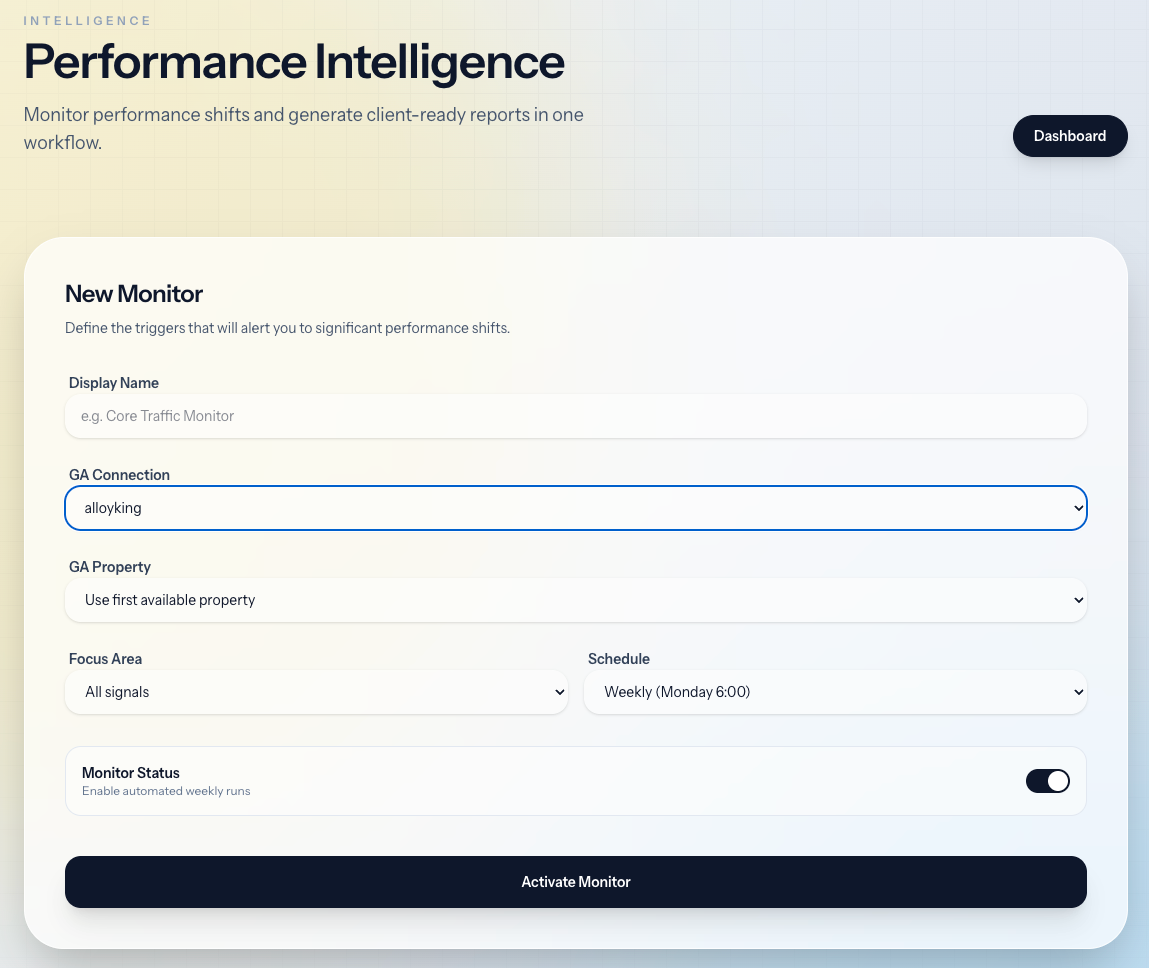 Agent GA é uma plataforma que oferece fluxo de trabalho orientado ao monitoramento para Google Analytics, facilitando a detecção de anomalias, análise de mudanças e geração automática de relatórios PDF prontos para clientes.