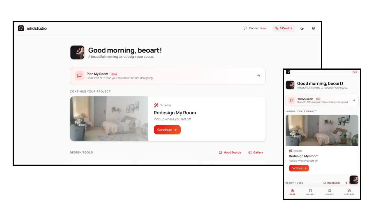 Descrição da ferramenta: Ai Home Designer Studio é uma plataforma que permite visualizar alterações em ambientes internos, como cores, móveis e decoração, antes de realizar compras ou reformas, facilitando decisões precisas sem necessidade de experiência em design.