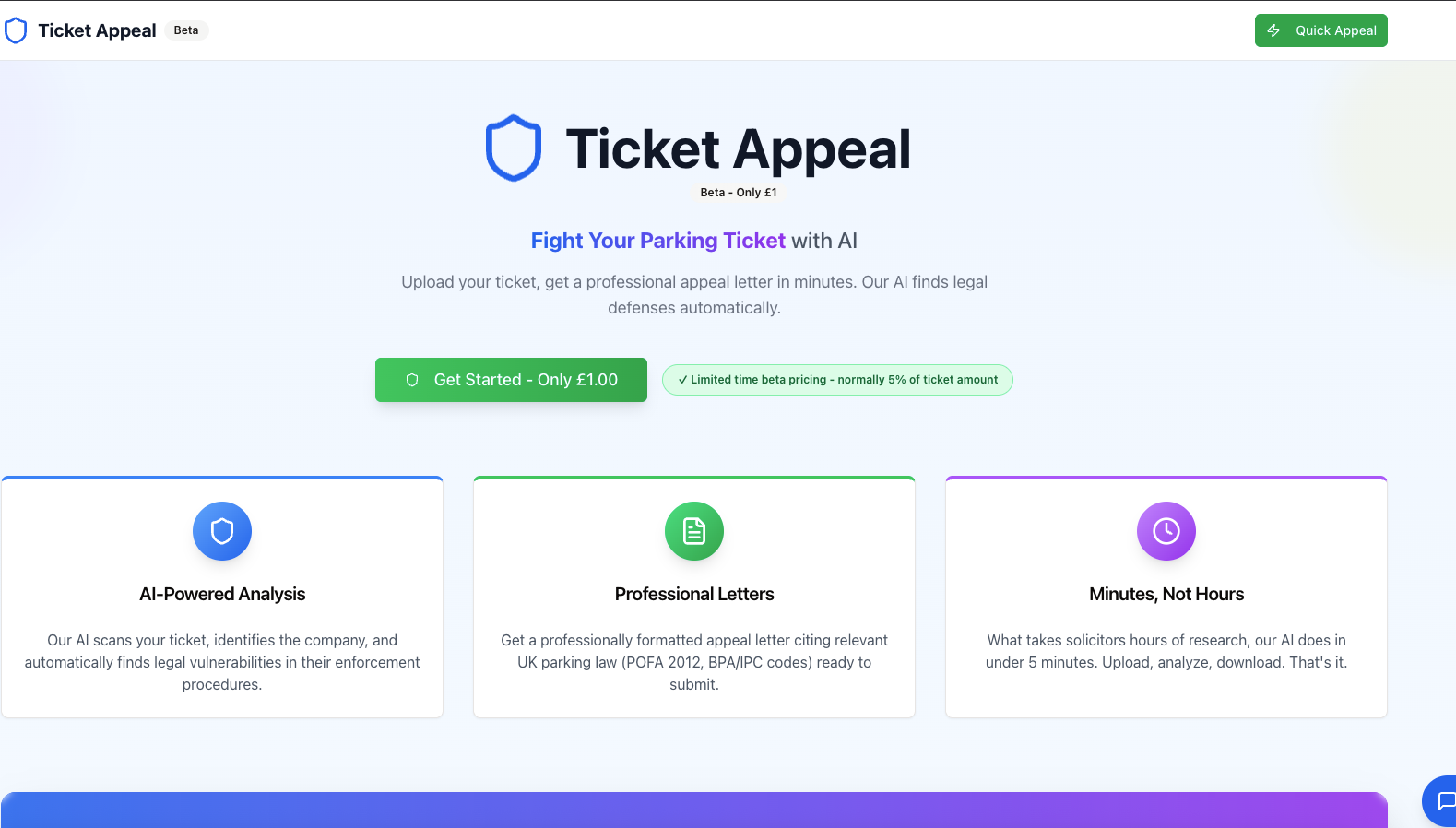 Descrição da ferramenta: AI Powered PCN Appeals é uma plataforma que utiliza inteligência artificial para analisar defesas legais, gerar recursos de apelação especializados para empresas de estacionamento no Reino Unido e realizar pesquisas de vulnerabilidade em operadores de estacionamento.