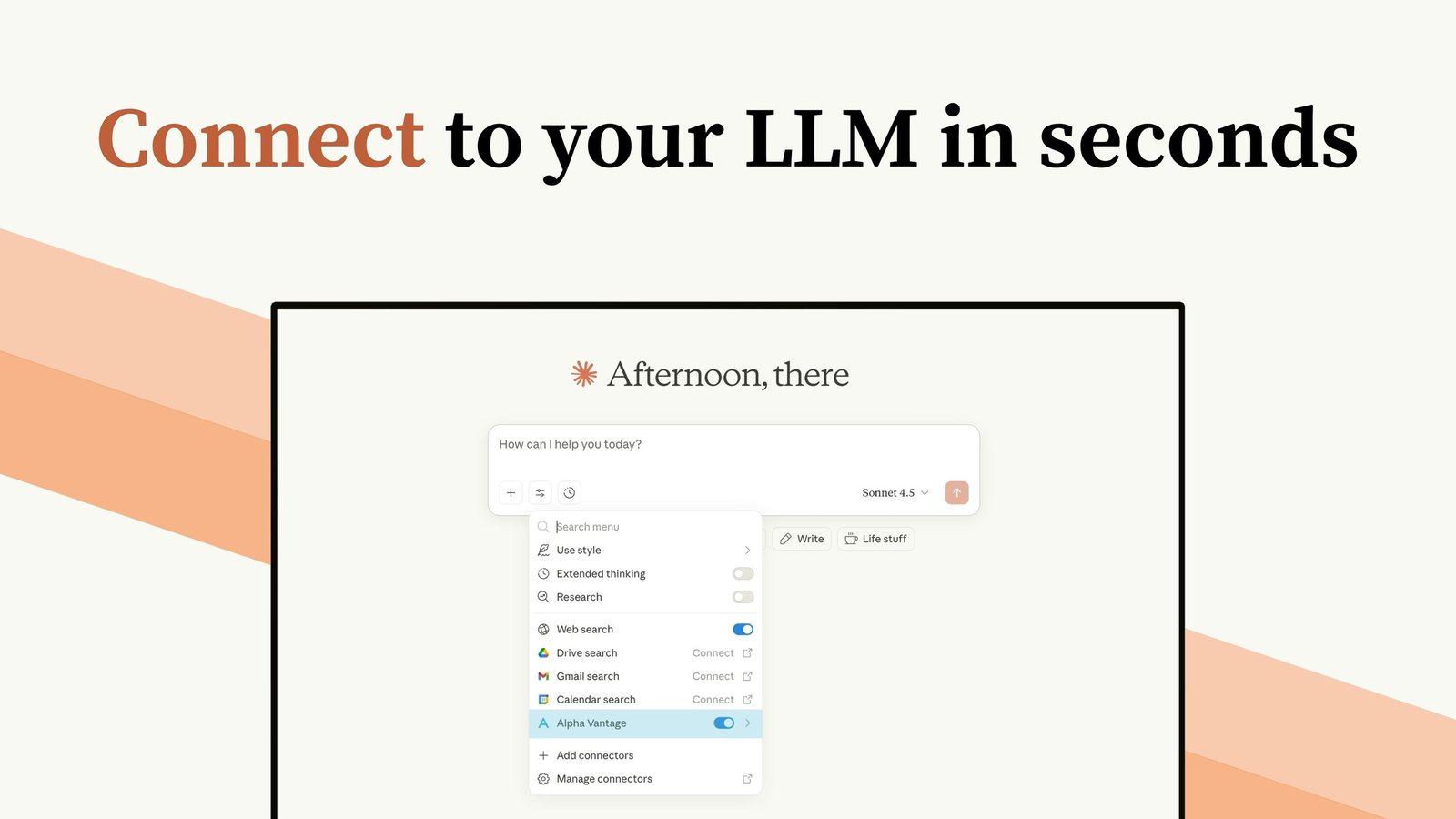 Descrição da ferramenta: Alpha Vantage MCP permite conectar modelos de linguagem ou ferramentas agenticas a dados financeiros em tempo real, facilitando análises rápidas e precisas de ações, criptomoedas, moedas, commodities e indicadores econômicos.