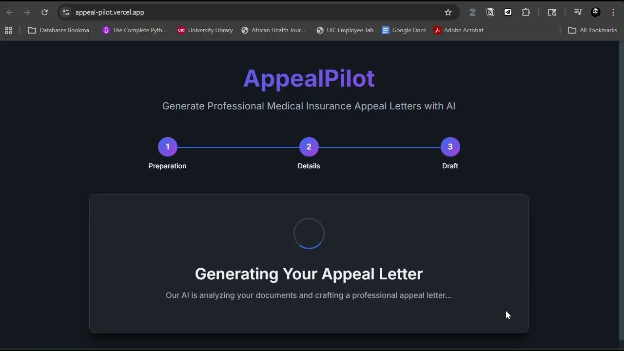Descrição da ferramenta: Appeal4Me é uma plataforma que utiliza inteligência artificial para gerar cartas de recurso profissionais para seguros médicos, facilitando o processo de apelação e aumentando as chances de sucesso nas autorizações.