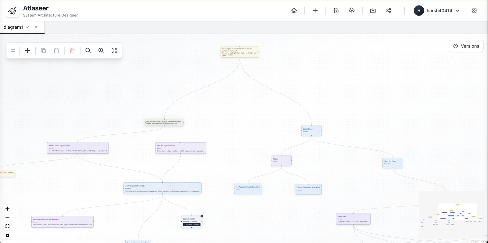 Descrição da ferramenta: Atlaseer é uma ferramenta de visualização de sistemas minimalista, projetada para ajudar desenvolvedores a compreenderem arquiteturas complexas de software com clareza e agilidade, evitando diagramas confusos ou genéricos.