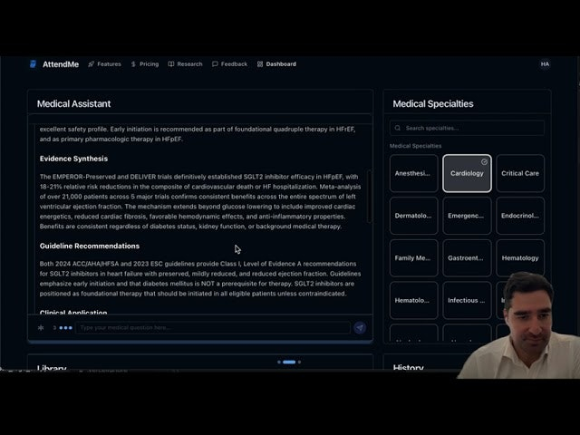 Descrição da ferramenta: AttendMe é uma plataforma de suporte à decisão clínica multiagente, que utiliza inteligência artificial para fornecer análises rápidas e precisas de artigos científicos, auxiliando profissionais de saúde na tomada de decisões baseadas em evidências.