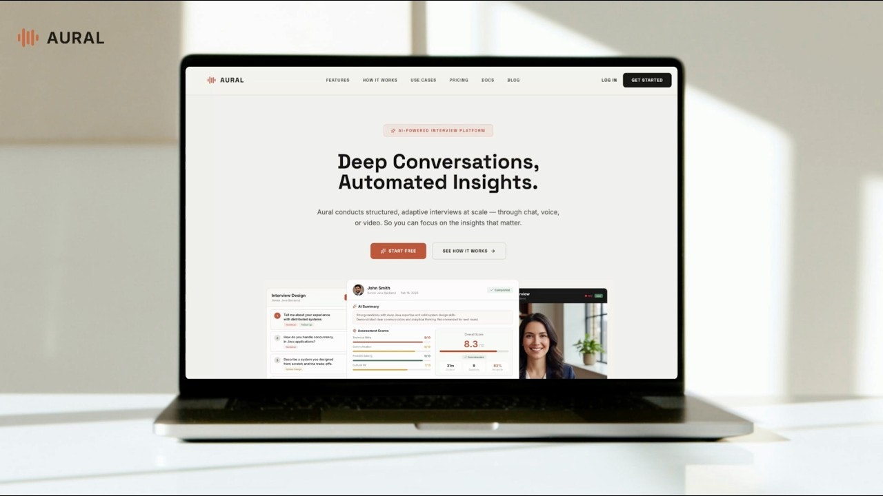 Descrição da ferramenta: Aural é uma plataforma de entrevistas com inteligência artificial que realiza entrevistas por voz, chat e vídeo em larga escala, fornecendo insights automatizados, transcrições e análises para aprimorar a tomada de decisão.