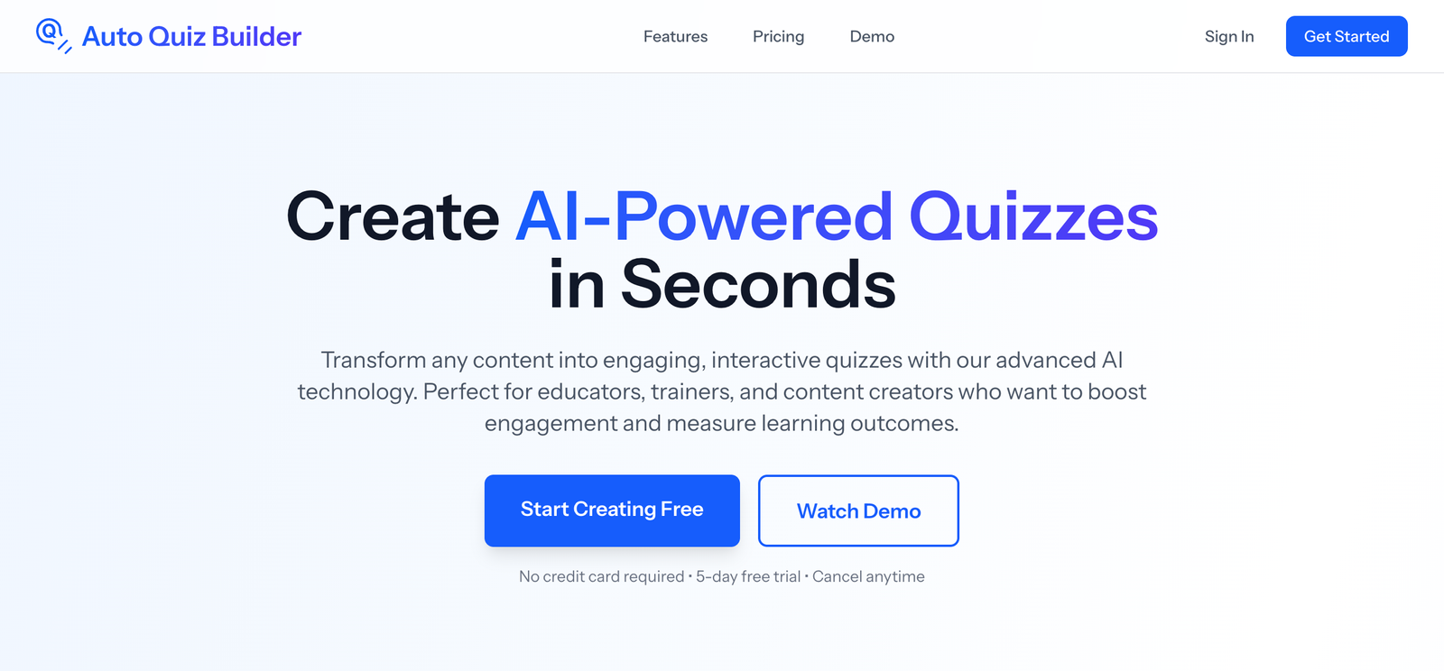 Descrição da ferramenta: AutoQuizBuilder é uma plataforma que utiliza inteligência artificial para transformar textos, artigos, PDFs ou aulas em questionários interativos de forma rápida e eficiente, facilitando o processo de criação de avaliações educativas.