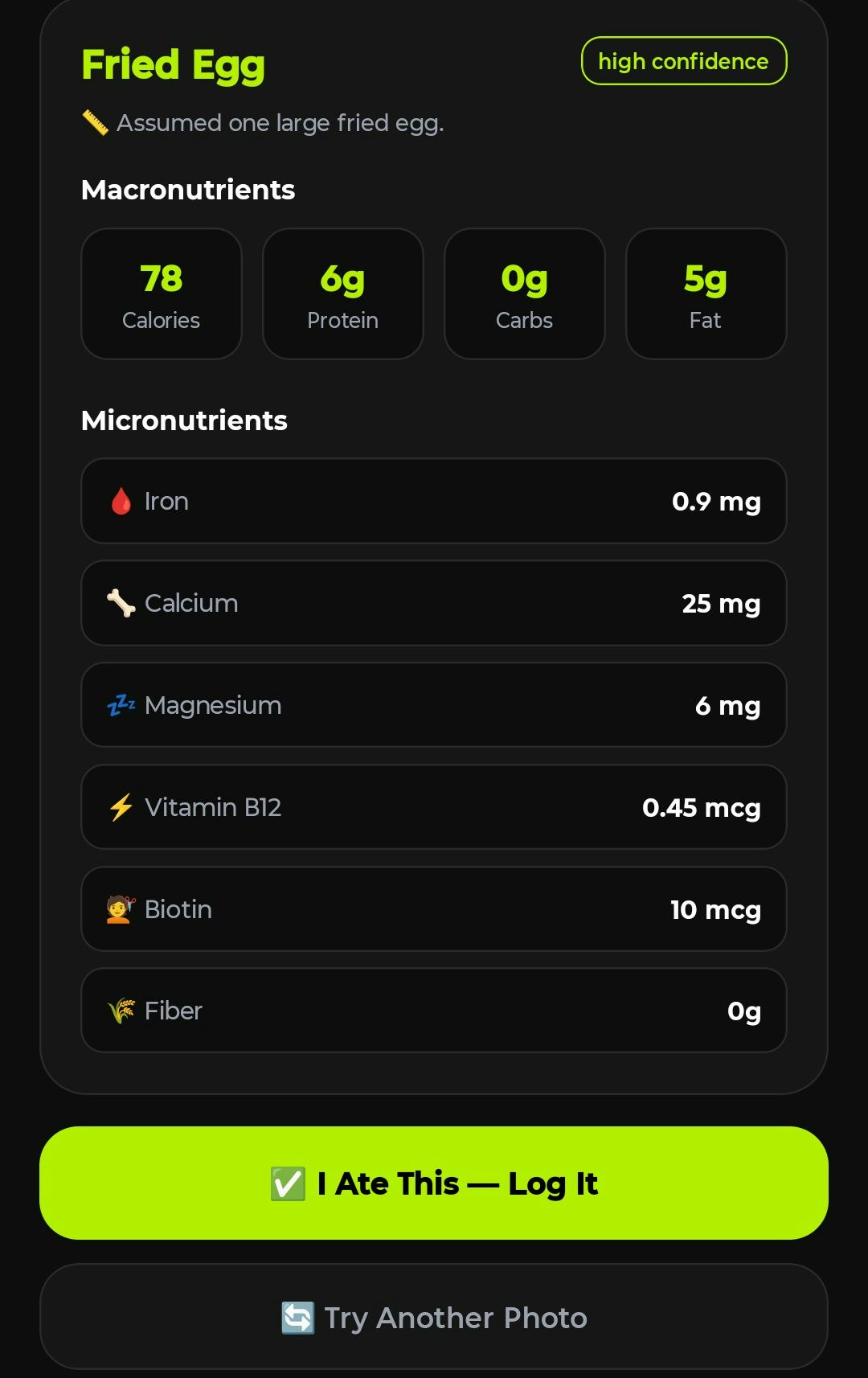 🥗 Acompanhamento de Micronutrientes: Monitora vitaminas e minerais essenciais como Ferro, B12, Cálcio, Magnésio, Biotina e Fibra.