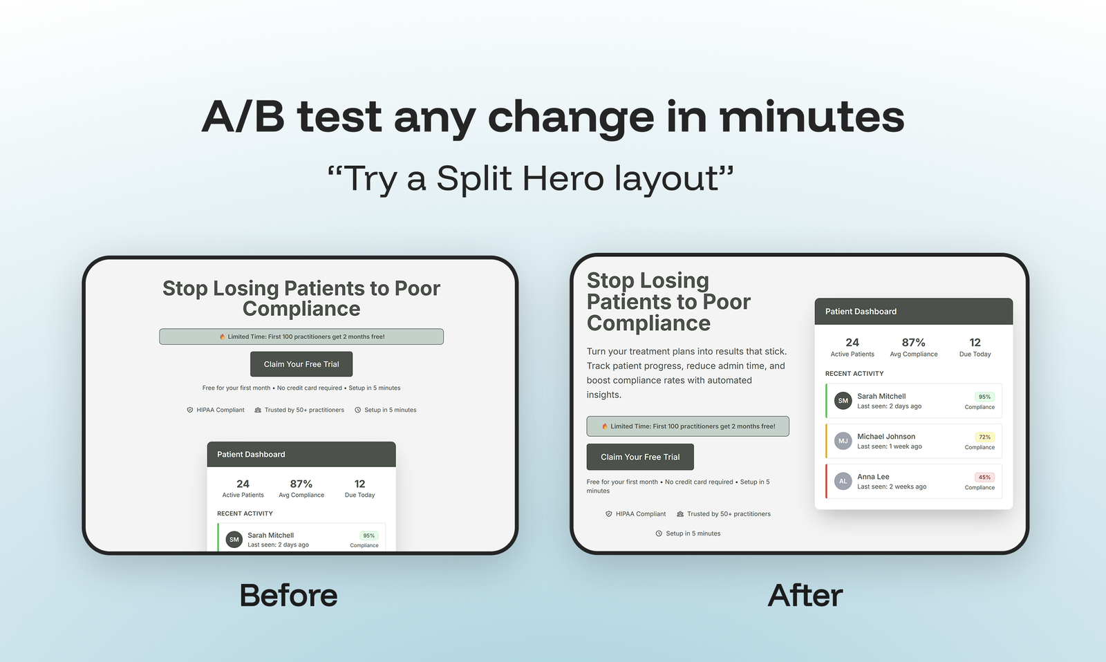 🚀 Lançamento rápido de testes A/B: Criar experimentos para testar variações de páginas em poucos minutos.