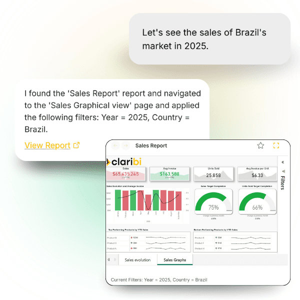 📊 Análise rápida de vendas: Obter dashboards filtrados instantaneamente ao fazer perguntas em linguagem natural sobre vendas mensais.