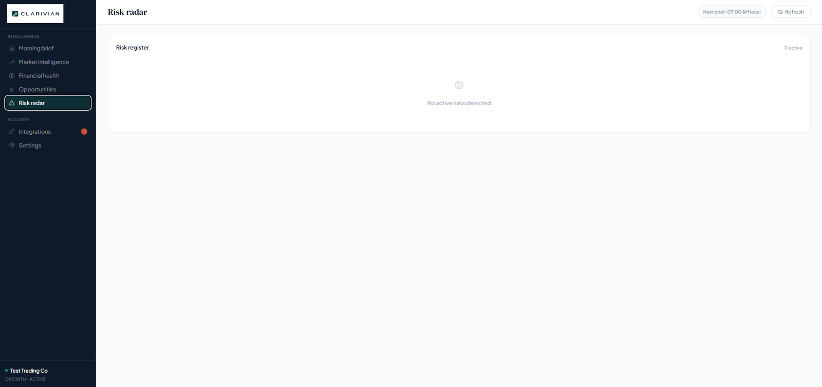 Descrição da ferramenta: Clarivian é uma plataforma de inteligência de mercado que envia um resumo matinal personalizado via WhatsApp às 07:00, incluindo sinais de mercado, saúde financeira, atualizações regulatórias e oportunidades para pequenas e médias empresas.