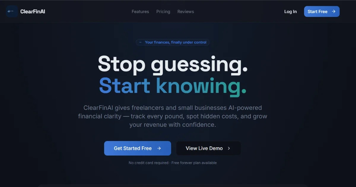Descrição da ferramenta: ClearFinAI é uma plataforma que oferece controle financeiro em tempo real para freelancers e pequenas empresas, permitindo registrar receitas, despesas, assinaturas recorrentes e receber análises inteligentes por meio de um painel intuitivo.