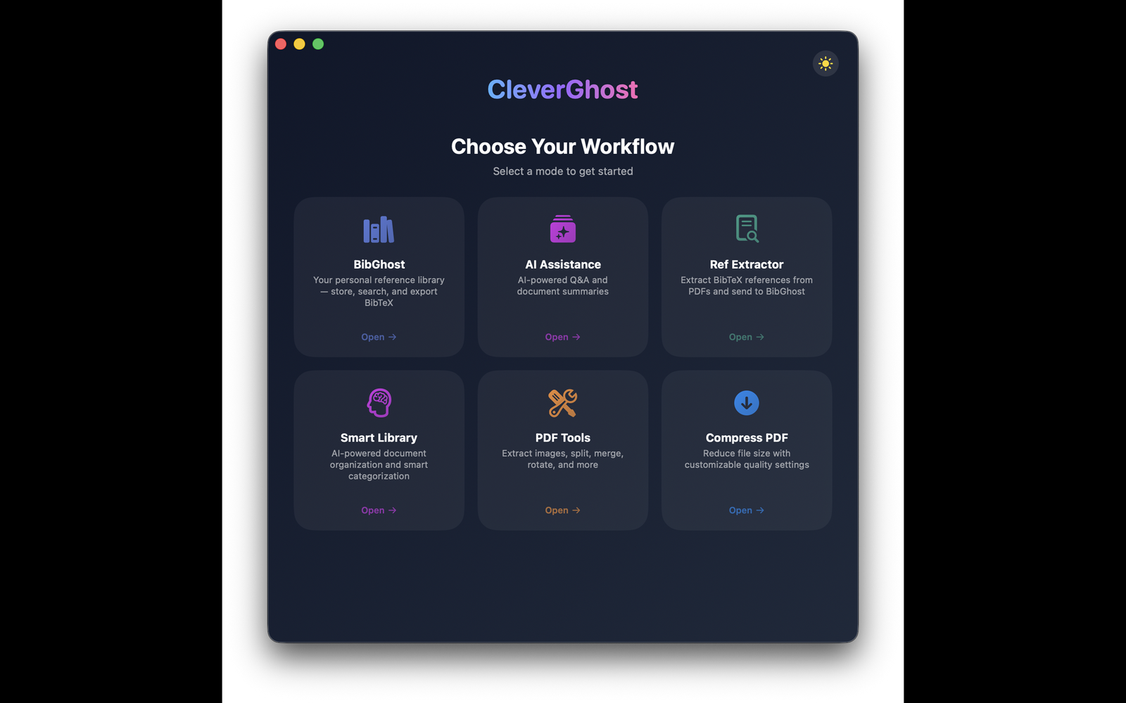 Descrição da ferramenta: CleverGhost é uma aplicação para Mac que utiliza inteligência artificial para processar documentos, extrair citações e gerenciar bibliotecas de forma segura, sem necessidade de assinaturas ou uploads na nuvem.