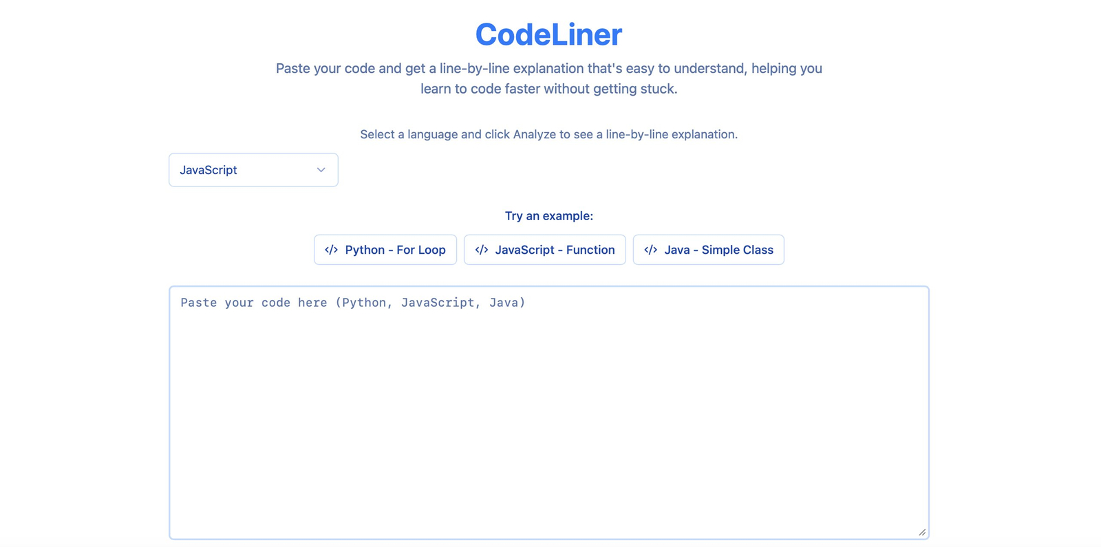 CodeLiner é uma inteligência artificial que interpreta códigos instantaneamente, oferecendo explicações detalhadas linha por linha, facilitando o entendimento para iniciantes e desenvolvedores explorando códigos desconhecidos.