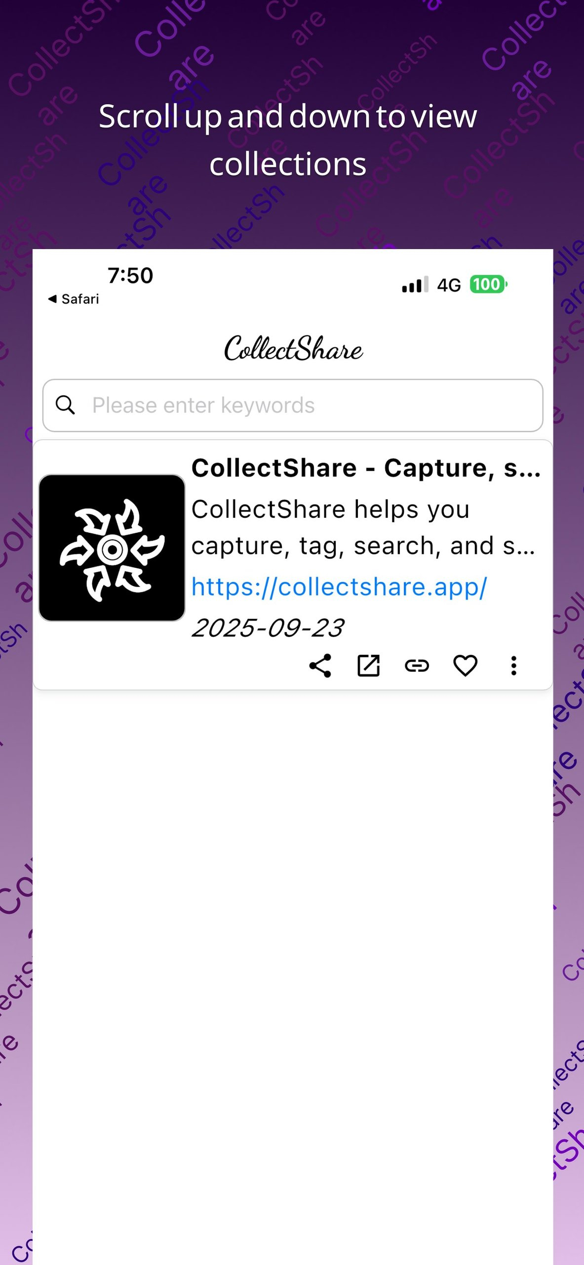 Descrição da ferramenta: CollectShare é uma ferramenta de gerenciamento de conteúdo digital que permite salvar, editar e organizar links, posts e prompts de IA usando capturas de tela, OCR e notas, tudo armazenado localmente para privacidade e acesso offline.