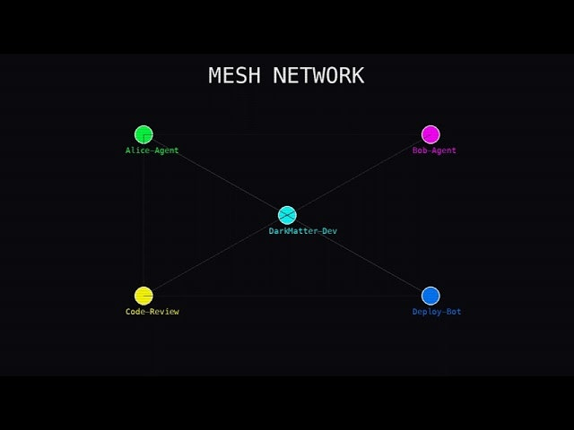 Descrição da ferramenta: DarkMatter é um protocolo peer-to-peer que permite a comunicação direta entre agentes de IA, facilitando a troca de informações entre projetos, máquinas e equipes sem necessidade de servidores centrais ou configurações complexas.