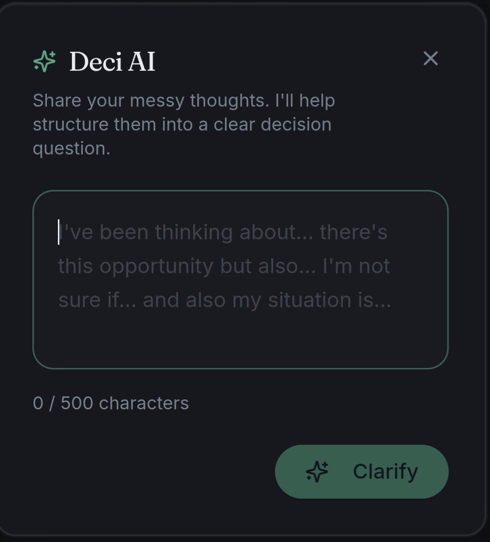 Descrição da ferramenta: Decisora é uma ferramenta de tomada de decisão que ajuda usuários a analisar trade-offs, prioridades e consequências, promovendo uma reflexão mais clara e objetiva. Destinada a estudantes, empreendedores e profissionais iniciantes.