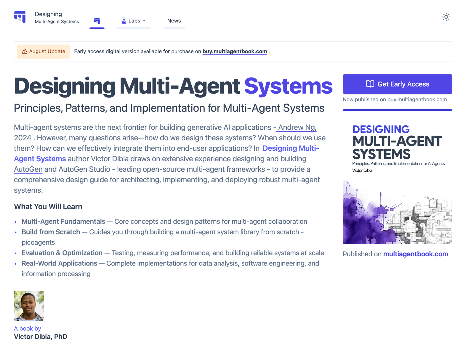 Descrição da ferramenta: Plataforma que ensina a construir, avaliar e implantar sistemas multiagentes de IA, incluindo a biblioteca picoagents, promovendo colaboração entre agentes especializados para resolver tarefas complexas.