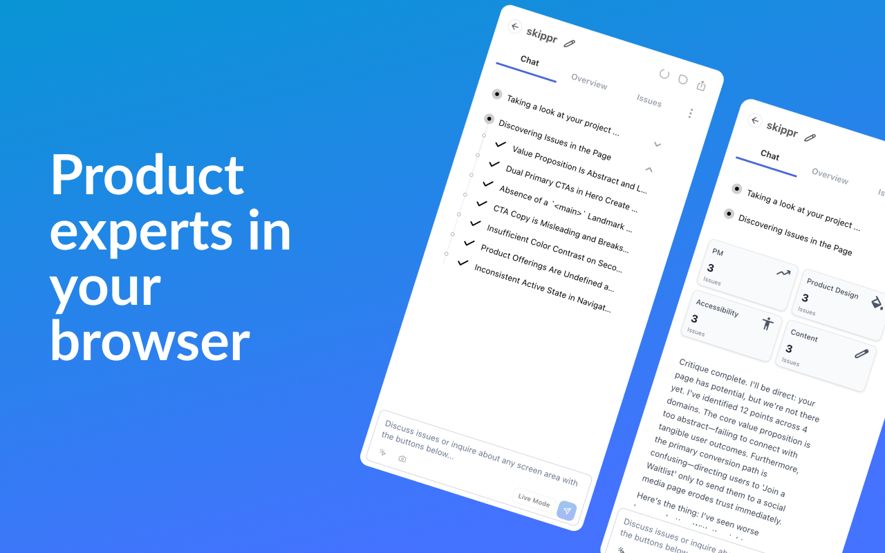 Descrição da ferramenta: Finesse by Skippr AI é uma ferramenta de inteligência artificial que identifica problemas de design, cópia e acessibilidade em interfaces, oferecendo feedback em tempo real para aprimoramento de produtos digitais em diversas plataformas.