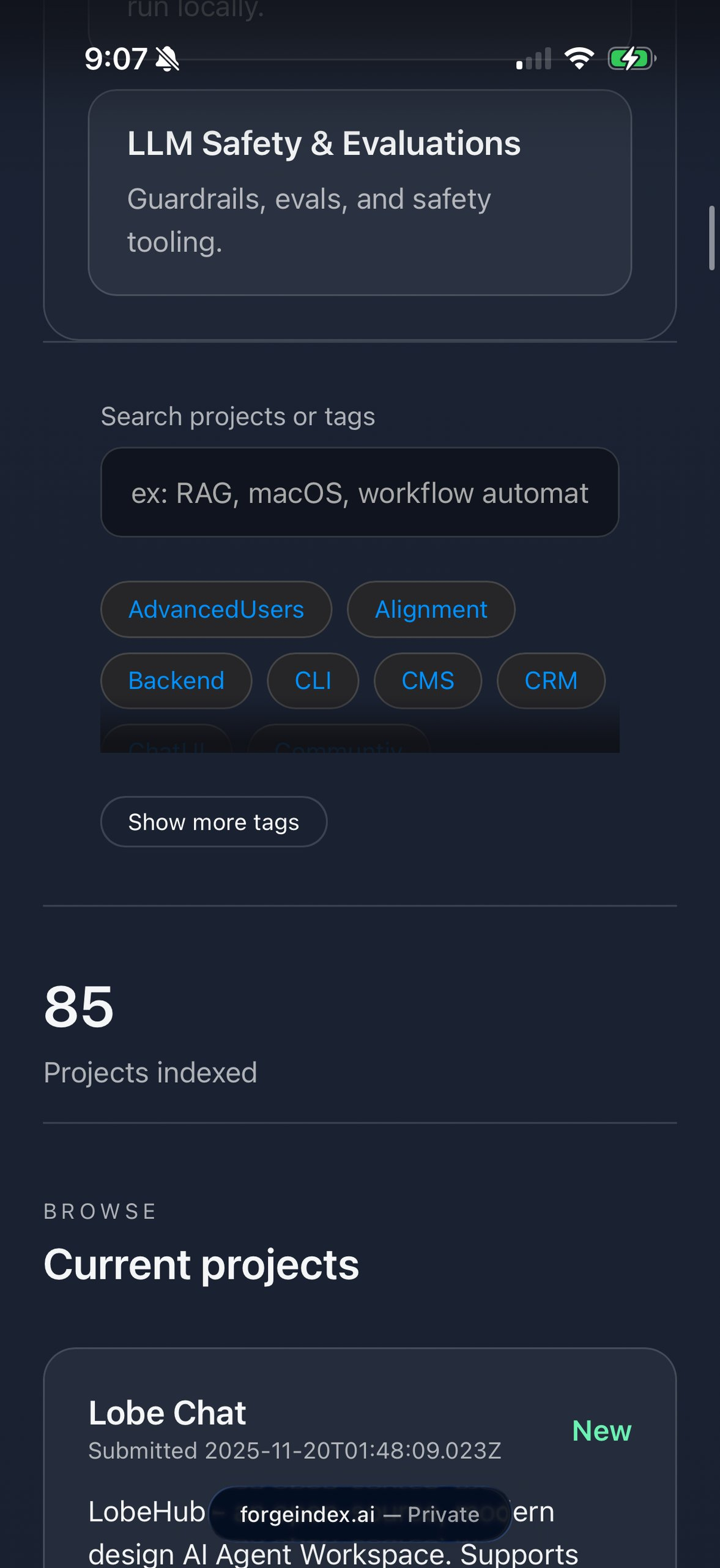 Descrição da ferramenta: ForgeIndex é um diretório curado de ferramentas de IA open-source e locais, voltado para desenvolvedores, entusiastas e usuários preocupados com privacidade, facilitando a descoberta de projetos que podem ser executados localmente sem necessidade de contas ou assinaturas.
