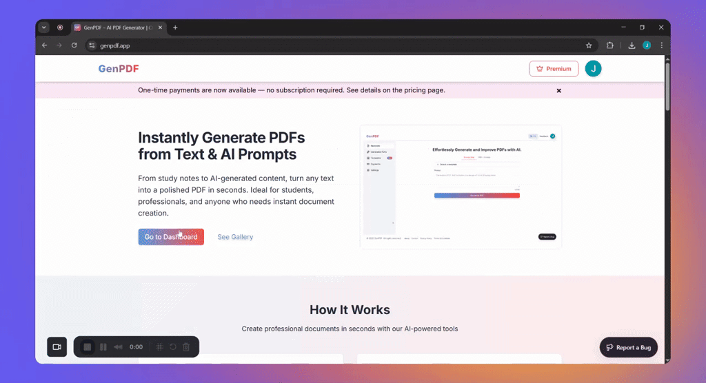 Descrição da ferramenta: GenPDF é uma plataforma que permite criar, editar e converter documentos PDF utilizando inteligência artificial, com rapidez e precisão. Oferece modelos prontos para diversas finalidades, facilitando o trabalho de estudantes, profissionais e empresas.