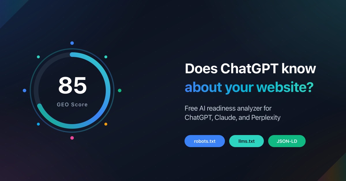 Descrição da ferramenta: O GEO Ready Score avalia a otimização de websites para sistemas de IA, analisando fatores como schema JSON-LD, robots.txt, tags Open Graph e conteúdo semântico, fornecendo resultados instantâneos sem necessidade de login ou cadastro.