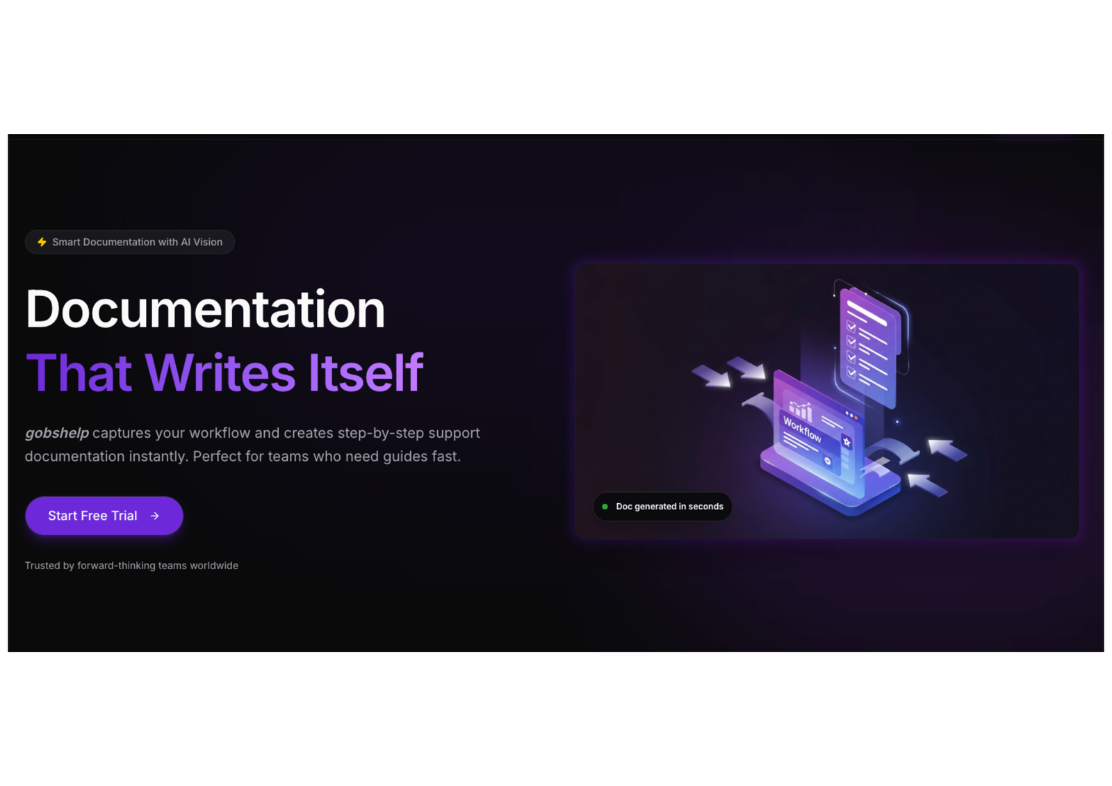 Descrição da ferramenta: gobshelp é uma plataforma que utiliza inteligência artificial para gerar documentação detalhada e passo a passo, capturando fluxos de trabalho de forma rápida e eficiente, com conformidade às normas GDPR e CCPA.