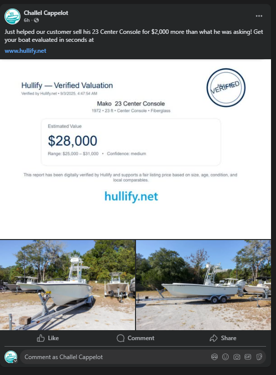 Descrição da ferramenta: Hullify é uma ferramenta online gratuita que fornece uma estimativa instantânea do valor de embarcações, permitindo aos usuários inserir detalhes específicos para obter um preço preciso e atualizado de seus barcos.