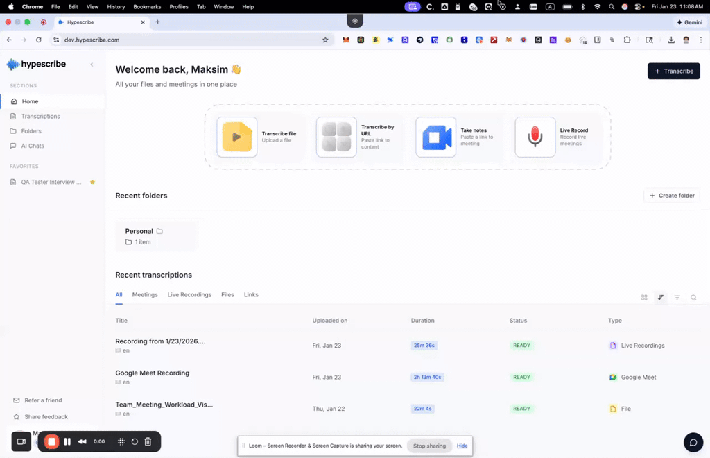 🗂️ Centralização de dados: Futuras integrações com Google Drive para armazenamento organizado das transcrições.