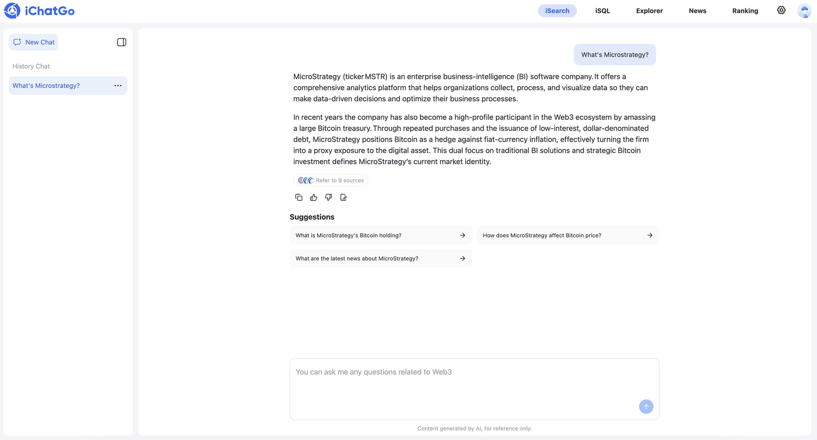 Descrição da ferramenta: iChatGo é um motor de busca Web3 alimentado por IA, que integra dados on-chain e off-chain para fornecer informações precisas, em tempo real e personalizadas aos usuários do ecossistema Web3, facilitando o acesso a dados fragmentados.
