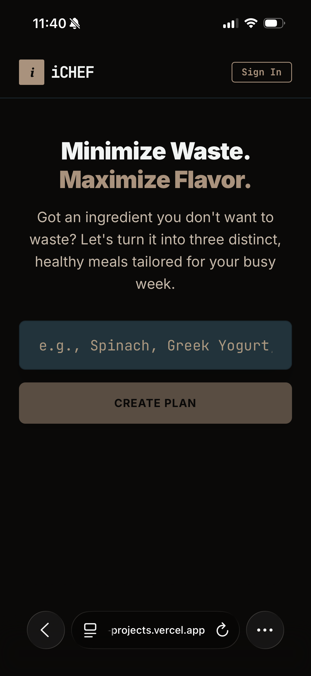 O iChef utiliza inteligência artificial para criar combinações de receitas que transformam qualquer ingrediente em três refeições distintas, otimizando o uso e evitando desperdícios na cozinha.