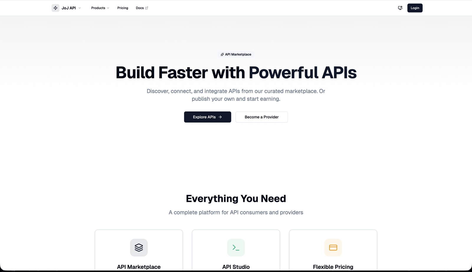 Descrição da ferramenta: JoJ API é uma plataforma que permite explorar, publicar e gerenciar APIs, facilitando a conexão entre desenvolvedores e provedores de soluções técnicas em um ecossistema integrado.