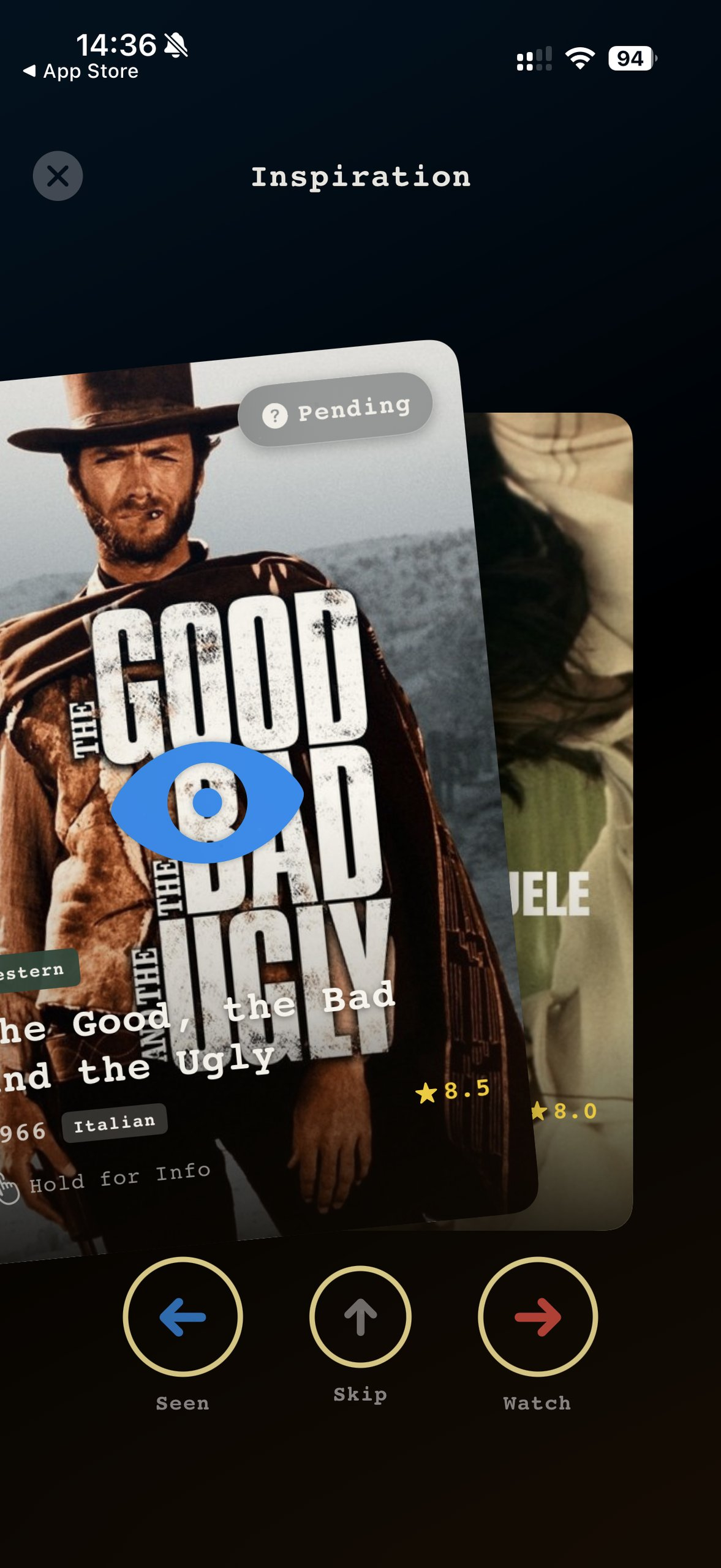 🎥 Gestão de Watchlist: Controle intuitivo da lista de filmes assistidos ou desejados, com interações físicas e estética visual.