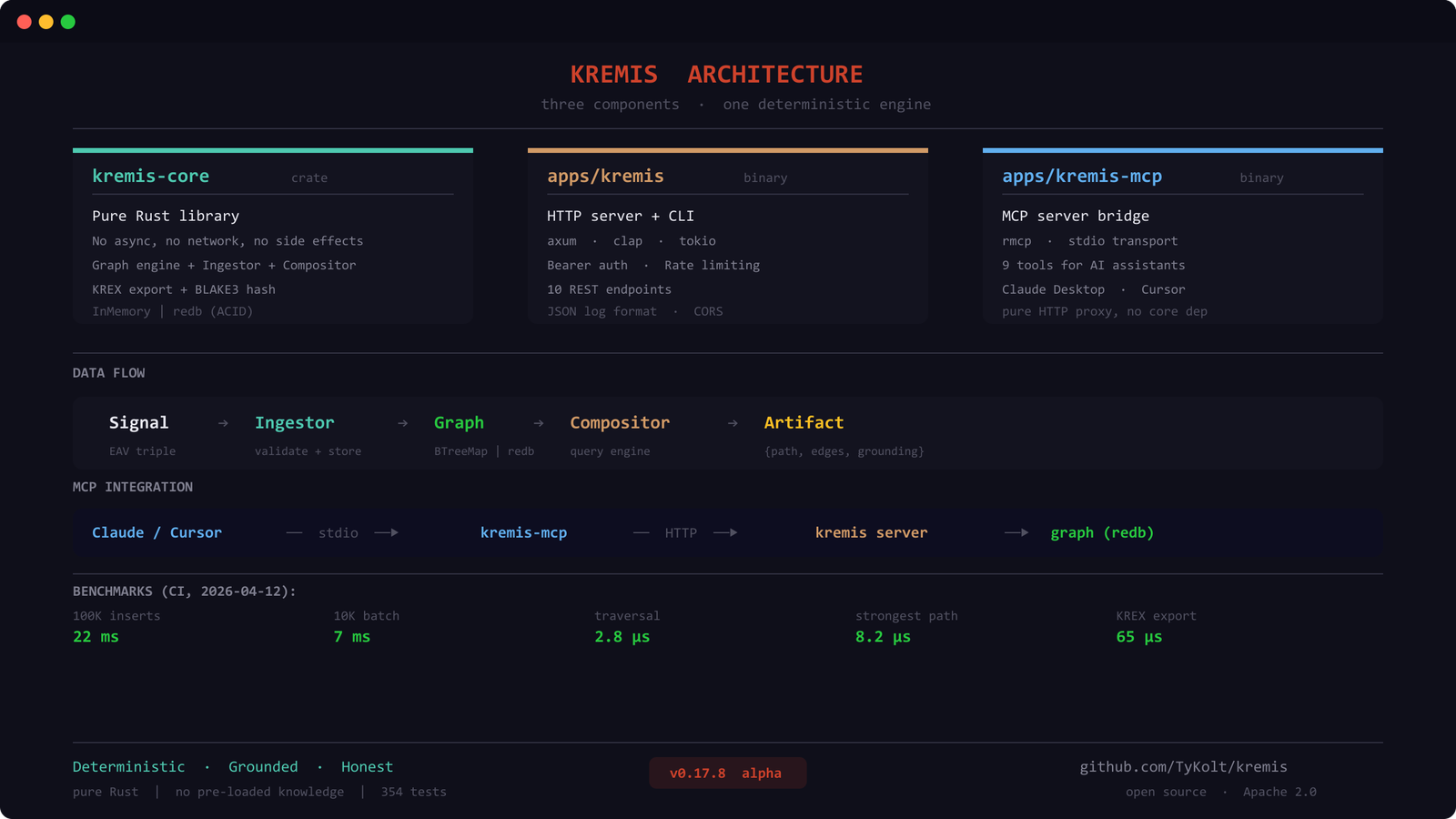 Descrição da ferramenta: Kremis é uma plataforma que valida alegações de modelos de linguagem natural contra dados reais, construindo gráficos determinísticos e classificando respostas como fatos, inferências ou desconhecidas, garantindo precisão sem probabilidades ou incertezas.