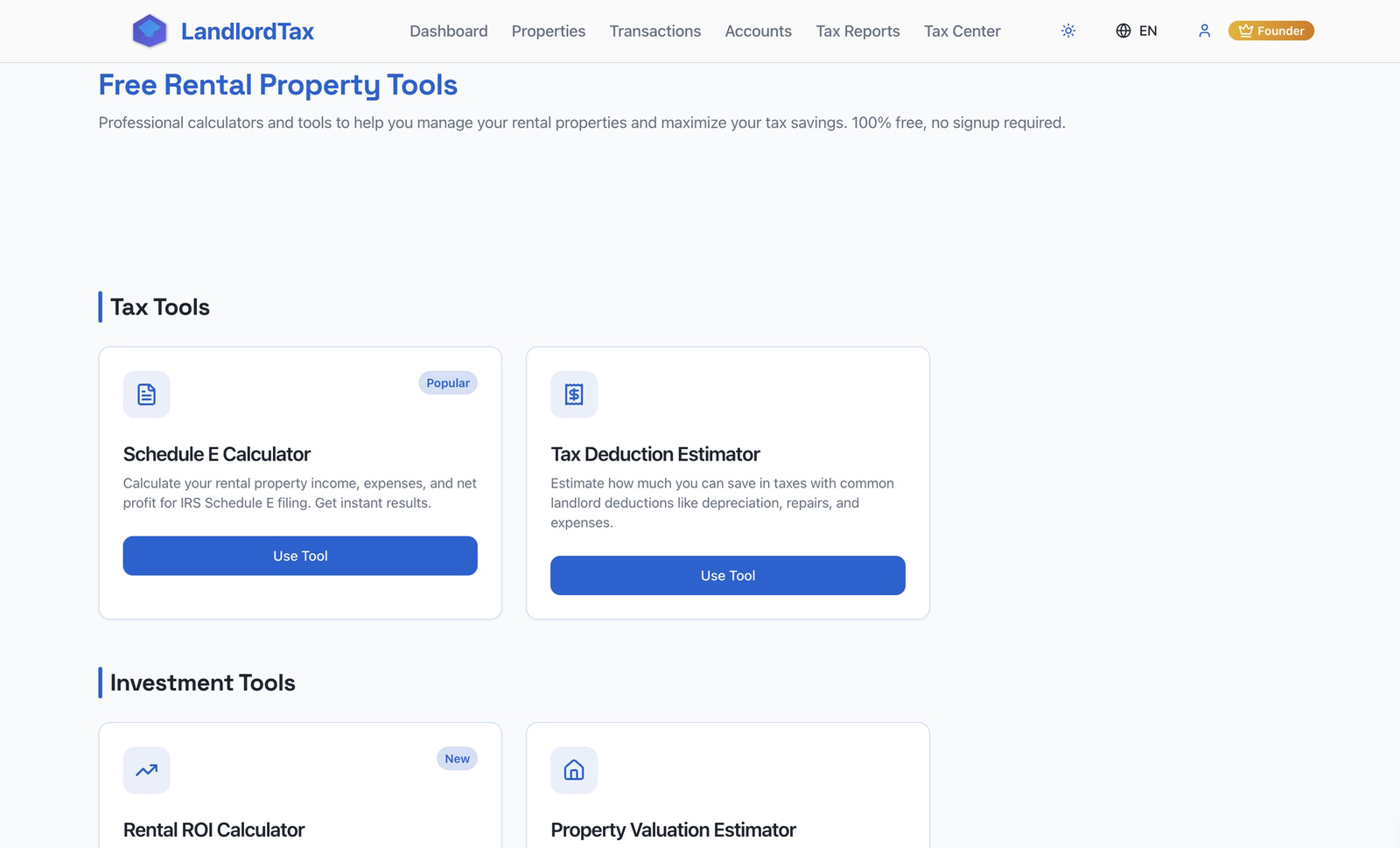 Descrição da ferramenta: LandlordTax é um software de IA voltado para proprietários com 1 a 10 imóveis, facilitando o planejamento tributário, controle de despesas e geração de relatórios fiscais de forma automatizada e precisa.