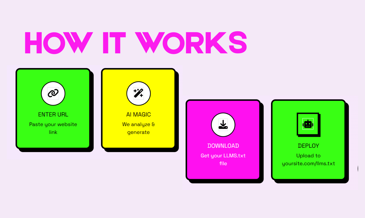 Descrição da ferramenta: A LLMS.txt Generator cria rapidamente um arquivo LLMS.txt para seu site, facilitando sua descoberta por sistemas de IA como ChatGPT, Claude e Perplexity. Processo simples, rápido e de uma única vez, tornando seu site compatível com IA de forma eficiente.