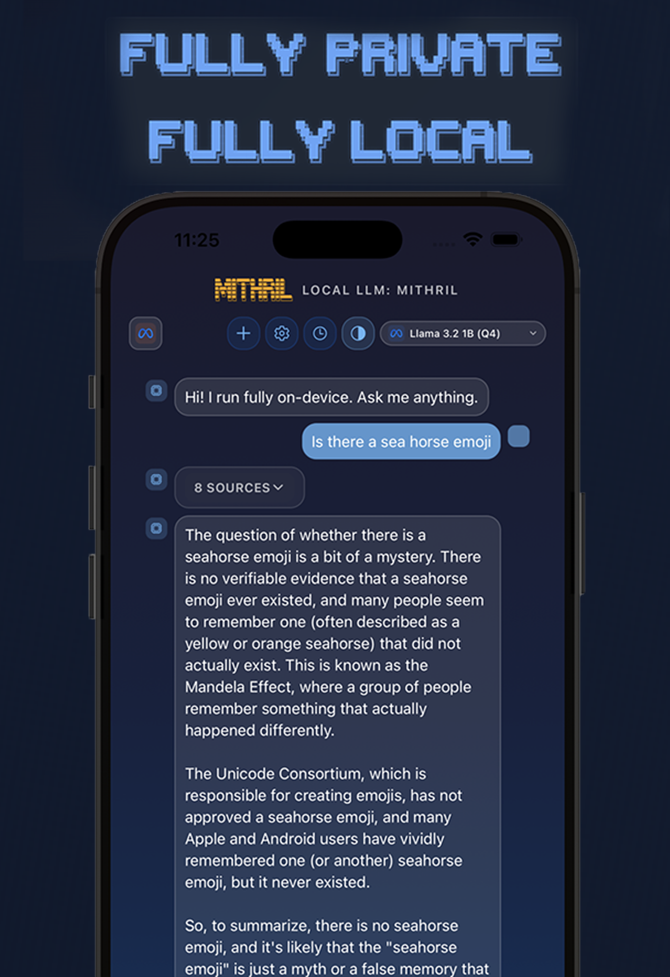 Descrição da ferramenta: O Local LLM: MITHRIL é uma suíte que permite executar grandes modelos de linguagem inteiramente no dispositivo, garantindo privacidade total e sem dependência de conexão com a nuvem ou transmissão de dados.