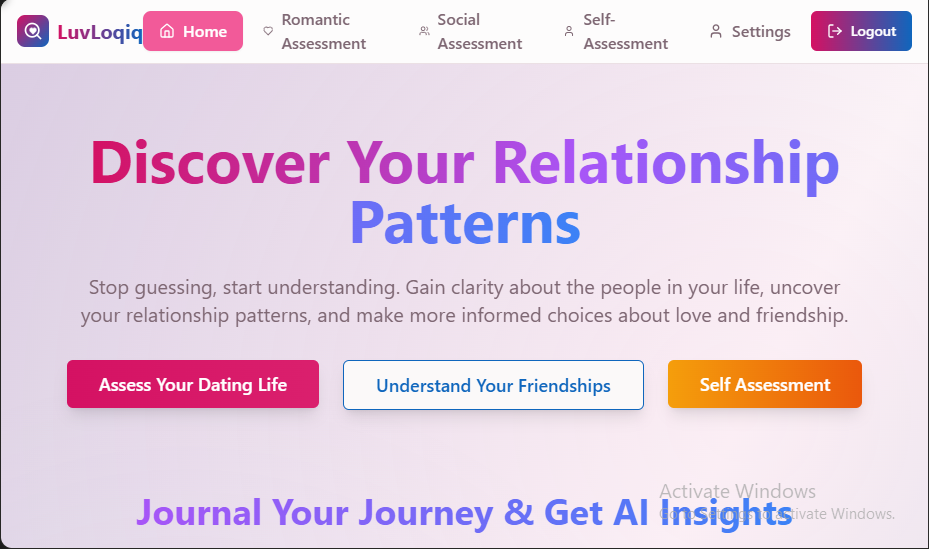 Descrição da ferramenta: LuvLoqiq é uma ferramenta de reconhecimento de padrões relacionais e autodescoberta que oferece insights gratuitos para melhorar escolhas amorosas e sociais, promovendo maior compreensão dos relacionamentos pessoais.
