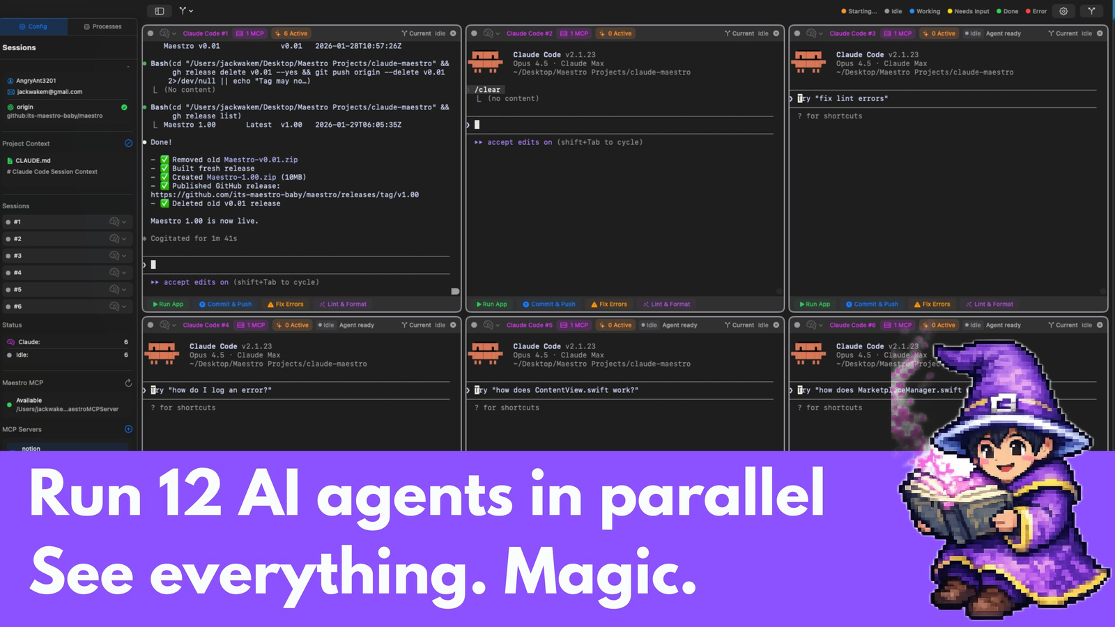 O Maestro é uma plataforma de gerenciamento de múltiplas sessões de agentes de IA, permitindo execução paralela, isolamento completo e visualização detalhada das atividades em um ambiente de linha de comando.